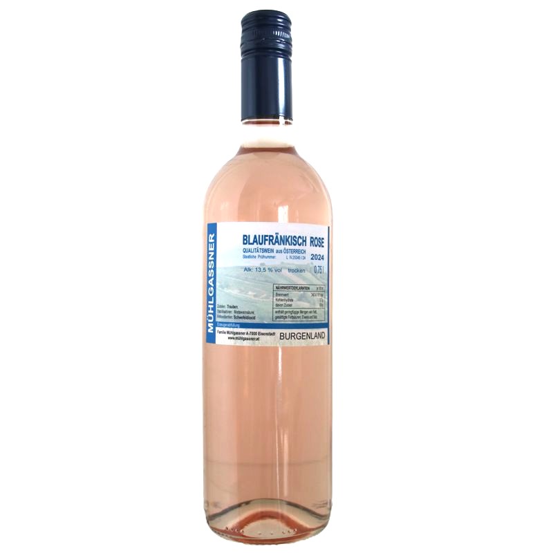 Blaufränkisch Rose der „stillen“ Ausführungsvariante; zartrosa; leicht, extrem fruchtbetont; elegant harmonisches Wechselspiel zwischen ausgeprägter Säure und zarter Süße