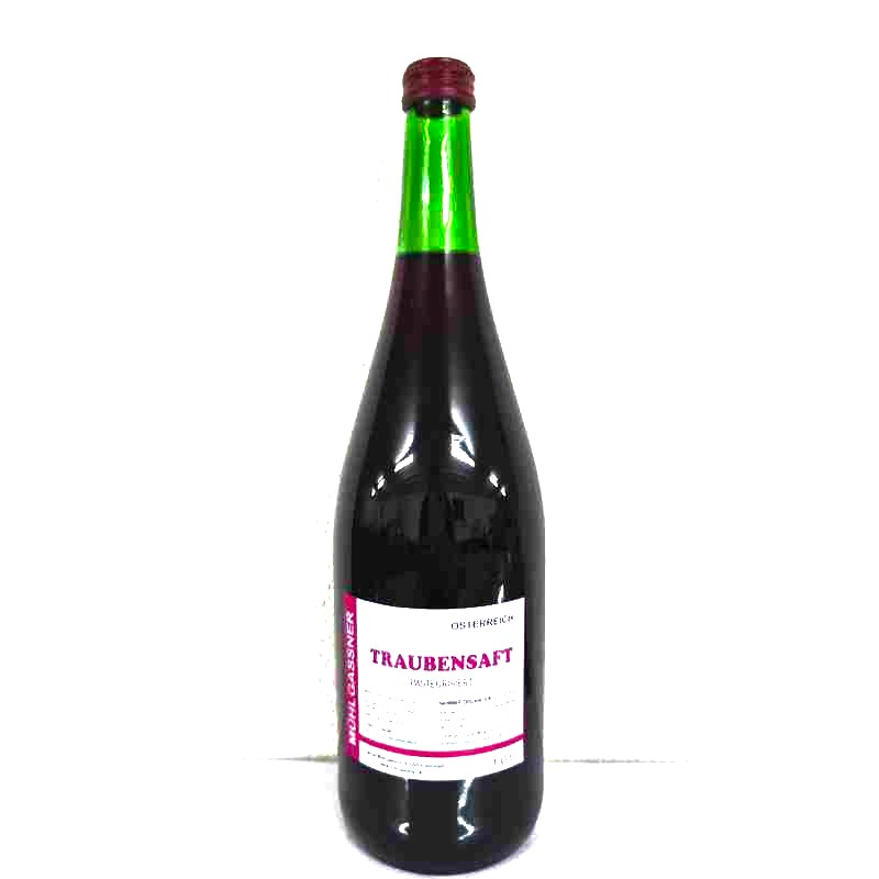 100% Traubensaft, durch Pasteurisieren haltbar gemacht.